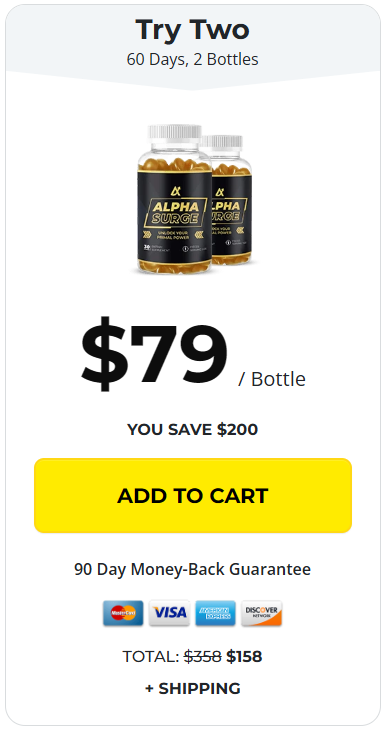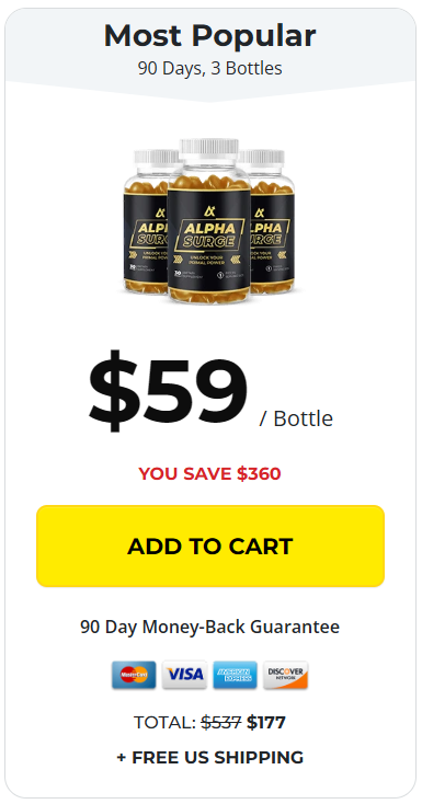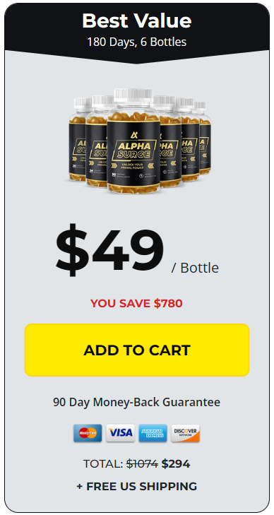 Claim your Discounted Alpha Surge Below While Stock Lasts Try Two 60 Days, 2 Bottles Alpha Surge 1 Bottle $79 / Bottle YOU SAVE $200 90 Day Money-Back Guarantee Card TOTAL: $358 $158 + SHIPPING Best Value 180 Days, 6 Bottles Alpha Surge 1 Bottle $49 / Bottle YOU SAVE $780 90 Day Money-Back Guarantee Card TOTAL: $1074 $294 + FREE US SHIPPING Most Popular 90 Days, 3 Bottles Alpha Surge 1 Bottle $59 / Bottle YOU SAVE $360 90 Day Money-Back Guarantee Card TOTAL: $537 $177 + FREE US SHIPPING Our customers say 4.98/5 Stars based on 2000+ reviews Why Alpha Surge? benefits icon 1 Ignite Unstoppable Energy Recover faster and push harder in the gym with renewed vigor. benefits icon 2 Unleash Primal Vitality Tap into the legendary power of , and Ashwagandha for improved stamina and confidence. benefits icon 3 Ignite Your Passion & Performance Experience enhanced blood flow for more satisfying moments. Ingredients L-Arginine HCl L-Arginine HCl Experience surging energy and enhanced circulation. Maca Root Extract Maca Root Extract Amplifies stamina, drive, and natural energy without the crash. Ashwagandha Extract Ashwagandha Extract Manage stress gracefully with calming properties. Nature's secret for explosive passion and enhanced blood flow. VIEW LABEL Harness the power of nature's finest extracts to elevate your stamina, dominance, and overall performance! Experience the ultimate upgrade to your lifestyle with benefits that speak directly to the modern man's needs. Unlock Your Unstoppable Transformation Fitness Alpha Surge Imagine waking up every day feeling unstoppable—with Alpha Surge, it's not just a dream, it's your new reality. ⚫ Boost in Stamina & Endurance: Enjoy boundless energy with enhanced circulation. Run longer, lift stronger, and seize each moment with vigor. ⚫ Rediscover Your Primal Dominance: and Maca Root connect you to ancient male vitality, igniting confidence and passion. ⚫ Calm under Pressure: Ashwagandha helps stress fade, letting you focus on achieving greatness. ⚫ Enhance Your Performance: and Beet Root promote smooth blood flow, boosting workouts and personal moments. Man Holding Bottle Unlock Your Peak Performance ⚫ Ignite a Surging Flow of Energy: Get your energy up and feel confident—let's unleash that power! ⚫ The Secret of the Rainforest Kings: Find fresh motivation and energy to keep you going. ⚫ Stress Slayer: Chill out your mind for a smoother performance. ⚫ Ignite Passion: Turn up the intensity for an even better experience. ⚫ Nitric Oxide Fuel: Enjoy clean energy to keep you buzzing all day without the jitters. ⚫ Antioxidant Defense: Keep your cells safe and boost your circulation. Gurantee Badge 5 stars Big Get Your Alpha Surge Today! 100% Satisfaction Guaranteed 90-Day Money Back Guarantee Alpha Surge comes with a 100% money back guarantee - 90 full days from your original purchase. If you're not totally and completely satisfied with our product or your results within the first 90 days simply let us know by calling our toll-free number or dropping us an email and we'll gladly give you a full refund within 48 hours of the product being returned. That's right - simply return the product, even your empty bottles, anytime within 90 days of your purchase and you'll receive a full, no-questions-asked refund (minus shipping and handling fees). Take advantage of this limited offer to stock up on Alpha Surge while supplies last! Try Two 60 Days, 2 Bottles Alpha Surge 1 Bottle $79 / Bottle YOU SAVE $200 90 Day Money-Back Guarantee Card TOTAL: $358 $158 + SHIPPING Best Value 180 Days, 6 Bottles Alpha Surge 1 Bottle $49 / Bottle YOU SAVE $780 90 Day Money-Back Guarantee Card TOTAL: $1074 $294 + FREE US SHIPPING Most Popular 90 Days, 3 Bottles Alpha Surge 1 Bottle $59 / Bottle YOU SAVE $360 90 Day Money-Back Guarantee Card TOTAL: $537 $177 + FREE US SHIPPING Our customers say 4.98/5 Stars based on 2000+ reviews free shipping Every 6 Bottle Order Gets FREE Shipping Too! *96% of customers order 6 bottles (Our recommended option) Bottles with Gummies Unleash Your Inner Alpha with Alpha Surge Fuel your peak stamina and primal dominance with our blend of potent ingredients that propel you to the ultimate edge. Delicious Fruity Flavor feature icon 2 Balance & Power feature icon 3 Testosterone Whisperer feature icon 4 Organic Ingredients What Our Customers Say Join Thousands of Satisfied Customers Feel the surge of boundless energy just like our thriving community of Alpha Surge enthusiasts. Bottle Gummies Feature Alpha Surge Other brands All-Natural Ingredients 100% natural, premium ingredients Synthetic ingredients with potential side effects Delicious Fruity Flavor Delicious, easy-to-take gummies Hard-to-swallow pills with no taste Results Feel the difference from day one Takes weeks to notice any difference Quality Control Lab-tested for potency and purity Mass-produced with questionable quality Got Questions? We've Got Answers How quickly will I notice results? Many men report feeling initial benefits within the first few days, with optimal results typically experienced within 2-3 weeks of consistent use. Remember, your body is unique, and results can vary based on individual factors. Are Alpha Surge Gummies natural? Is it safe to use? How long does delivery take? Men Bottle Try Alpha Surge Today At Special Introductory Pricing! Try Two 60 Days, 2 Bottles Alpha Surge 1 Bottle $79 / Bottle YOU SAVE $200 90 Day Money-Back Guarantee Card TOTAL: $358 $158 + SHIPPING Best Value 180 Days, 6 Bottles Alpha Surge 1 Bottle $49 / Bottle YOU SAVE $780 90 Day Money-Back Guarantee Card TOTAL: $1074 $294 + FREE US SHIPPING Most Popular 90 Days, 3 Bottles Alpha Surge 1 Bottle $59 / Bottle YOU SAVE $360 90 Day Money-Back Guarantee Card TOTAL: $537 $177 + FREE US SHIPPING Our customers say 4.98/5 Stars based on 2000+ reviews 5 star review Free Shipping 5 star review Easy Returns 5 star review 24/7 Support 5 star review Quality Assured Scientific References References Th